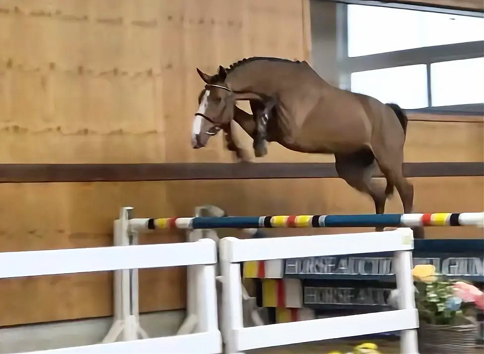 His conformation is distinctly modern and harmonious, with an elegant, athletic silhouette: a long, well-sloped shoulder, strong topline, balanced frame and a powerful hindquarter that ensures scope, balance and effortless jumping ability. His presence is striking, distinctive and immediately noticeable.